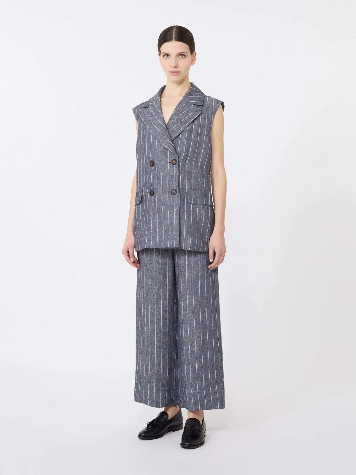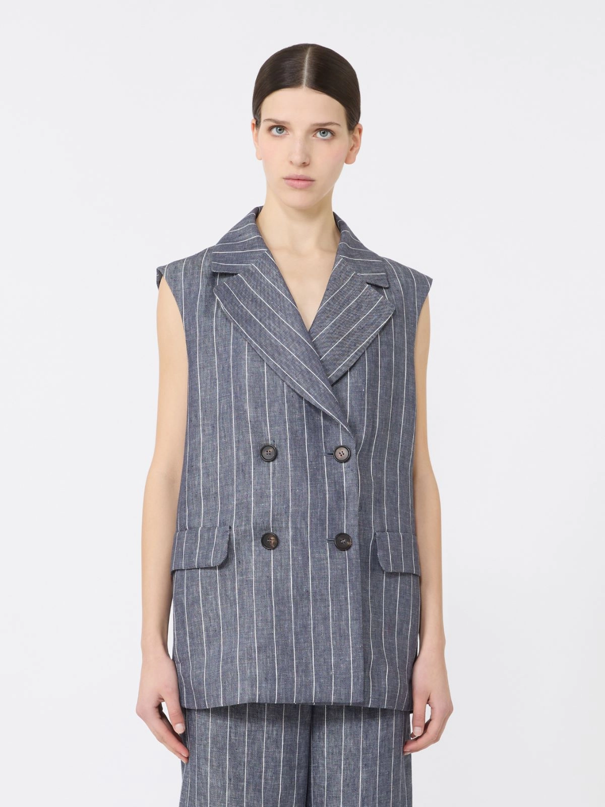 Pinstriped linen Batavia gilet with a denim effect + ULTRAMARINE - Max Mara